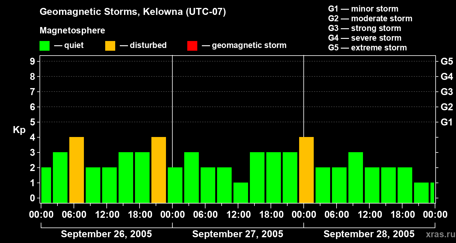 Geomagnetic storms in Kelowna on Sep 28, 2005