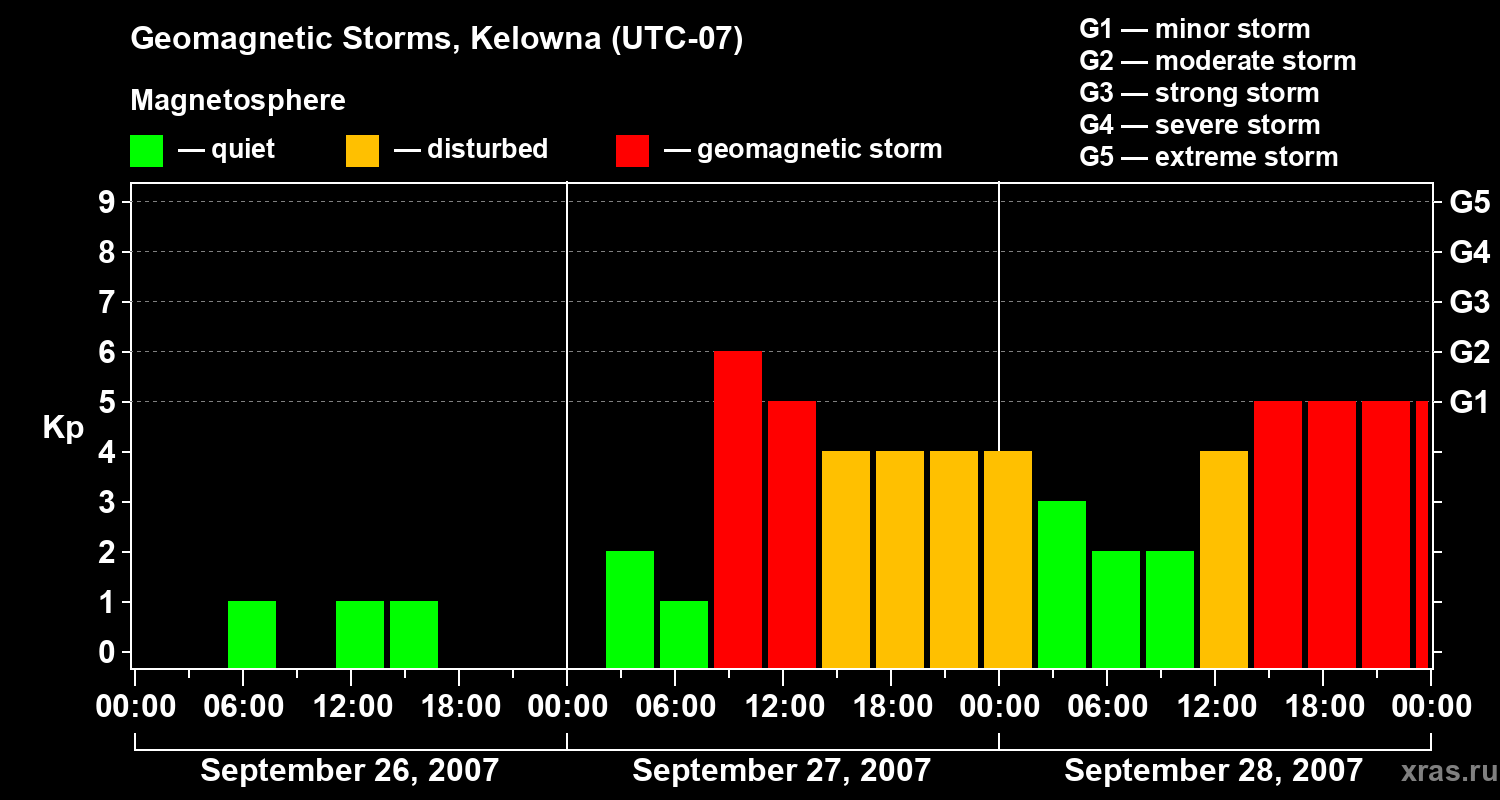 Geomagnetic storms in Kelowna on Sep 28, 2007