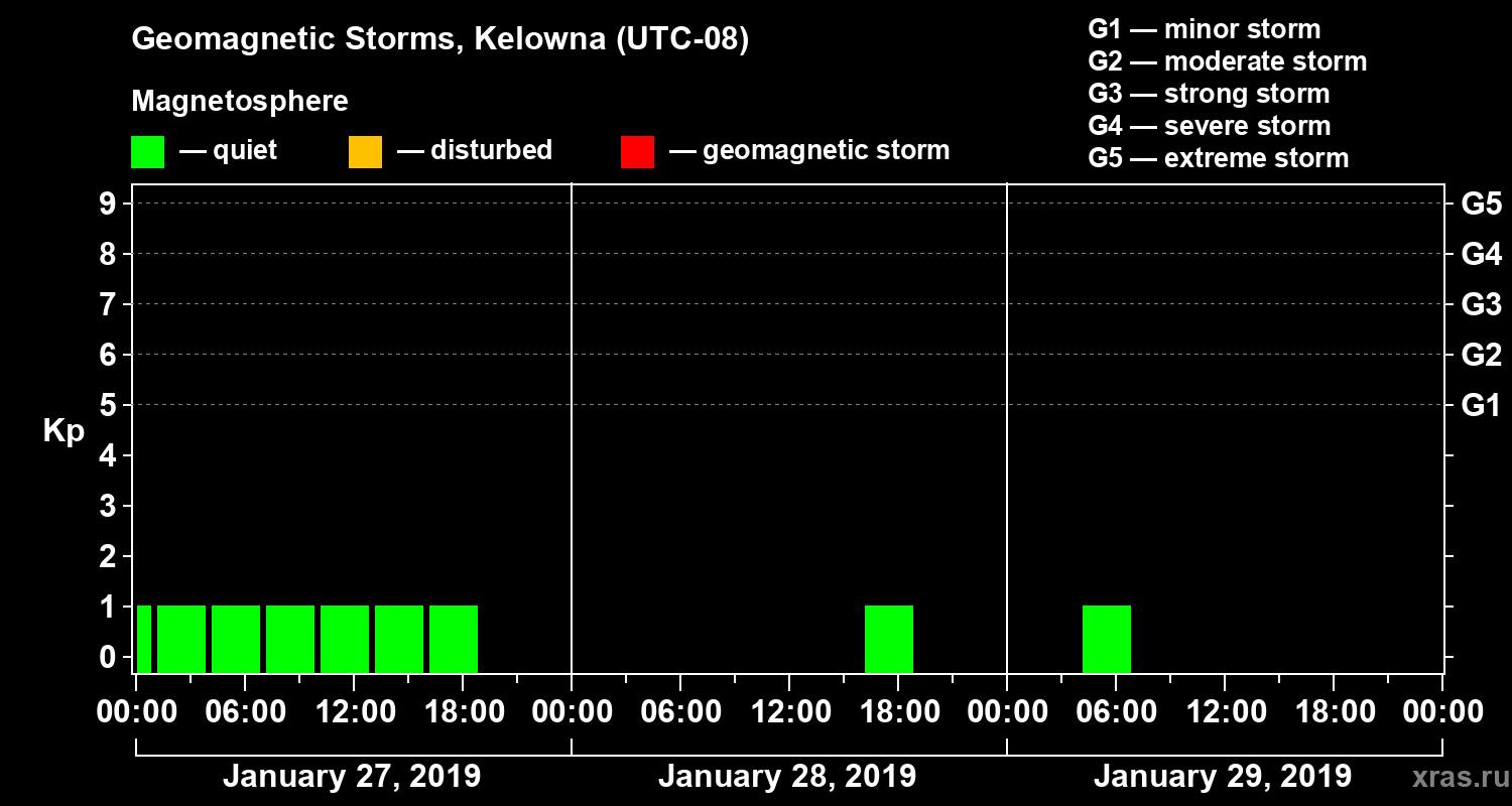 Geomagnetic storms in Kelowna on Jan 29, 2019