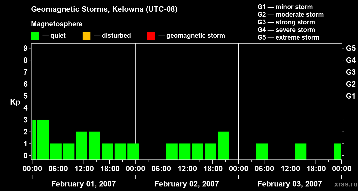Geomagnetic storms in Kelowna on Feb 03, 2007