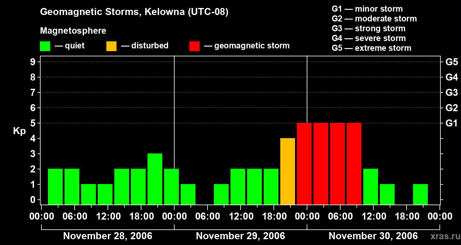 Geomagnetic storms in Kelowna on Nov 30, 2006