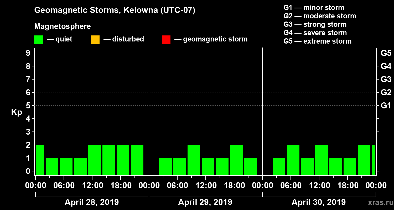 Geomagnetic storms in Kelowna on Apr 30, 2019