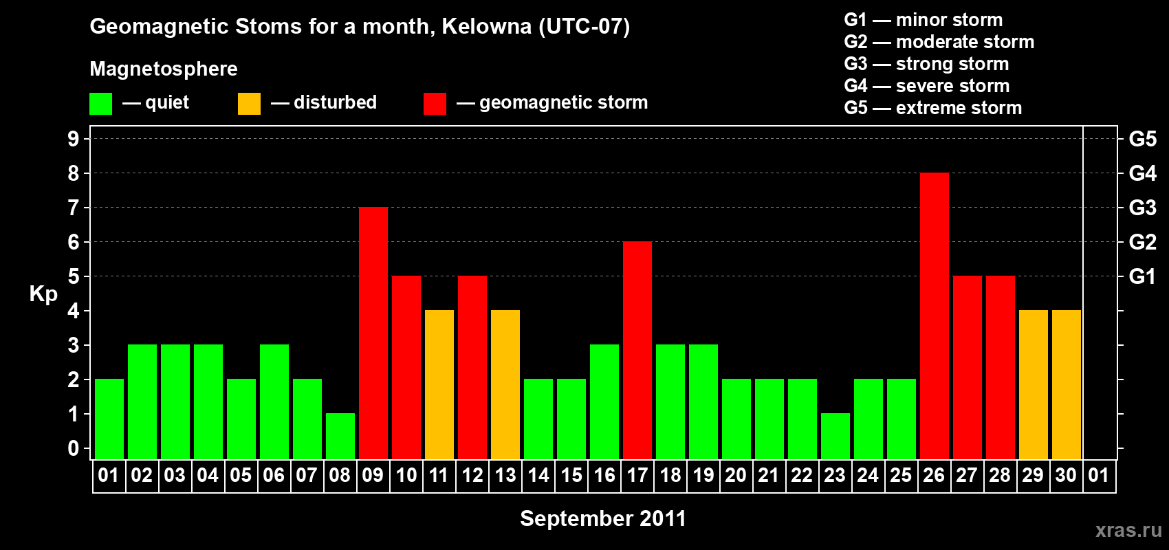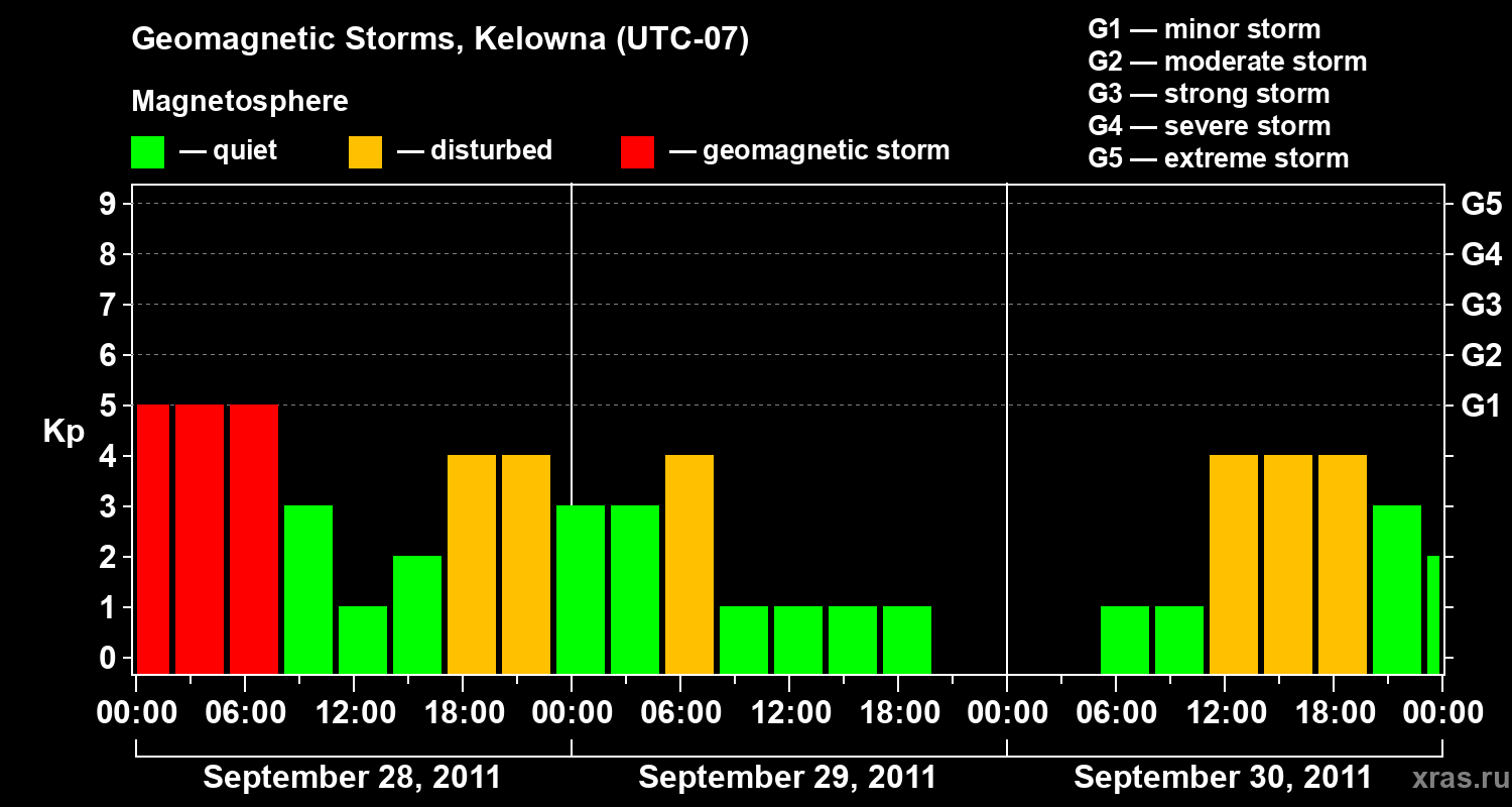Geomagnetic storms in Kelowna in September 2011