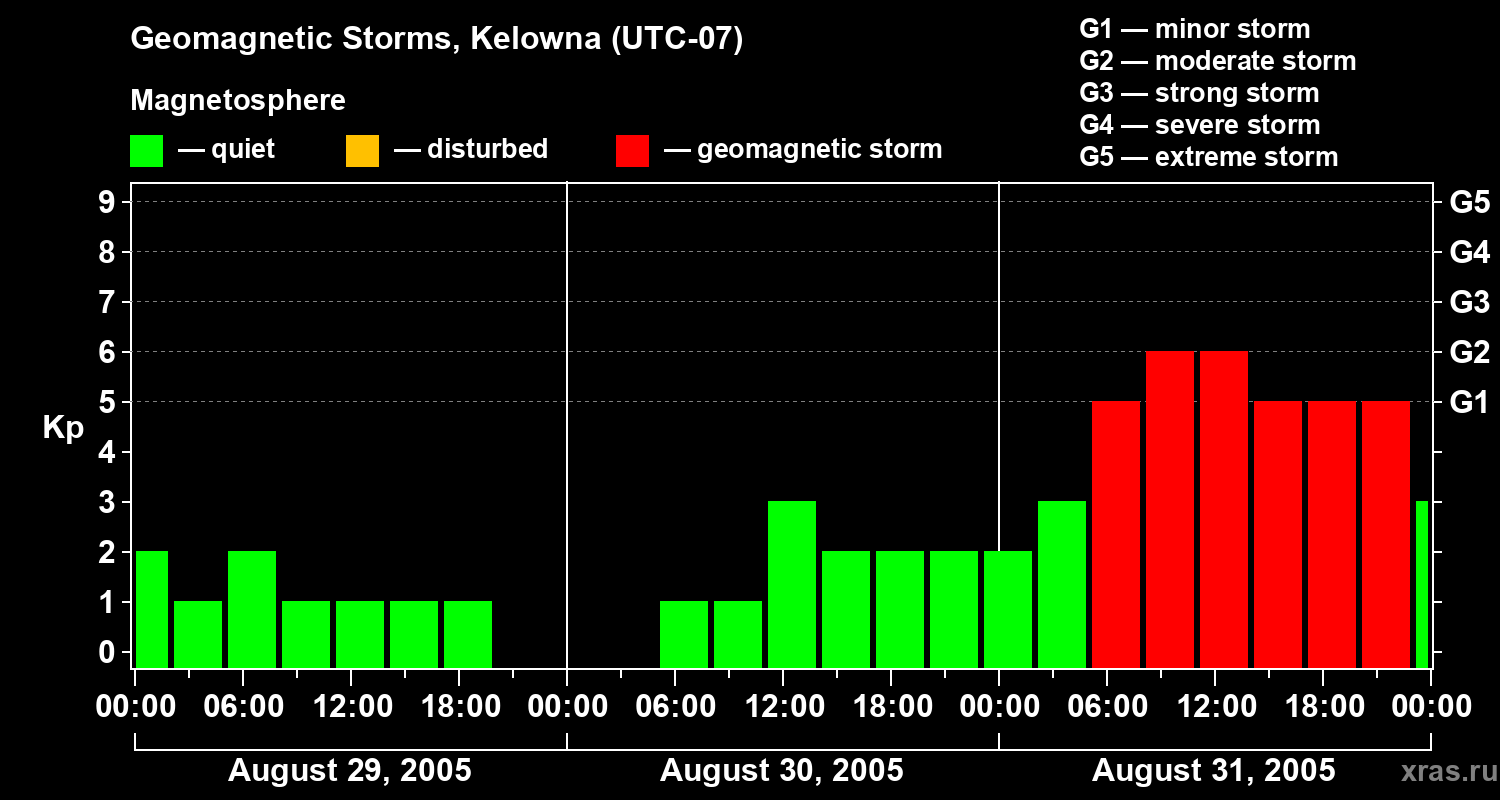 Geomagnetic storms in Kelowna on Aug 31, 2005