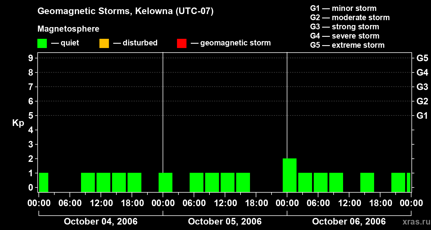 Geomagnetic storms in Kelowna on Oct 06, 2006