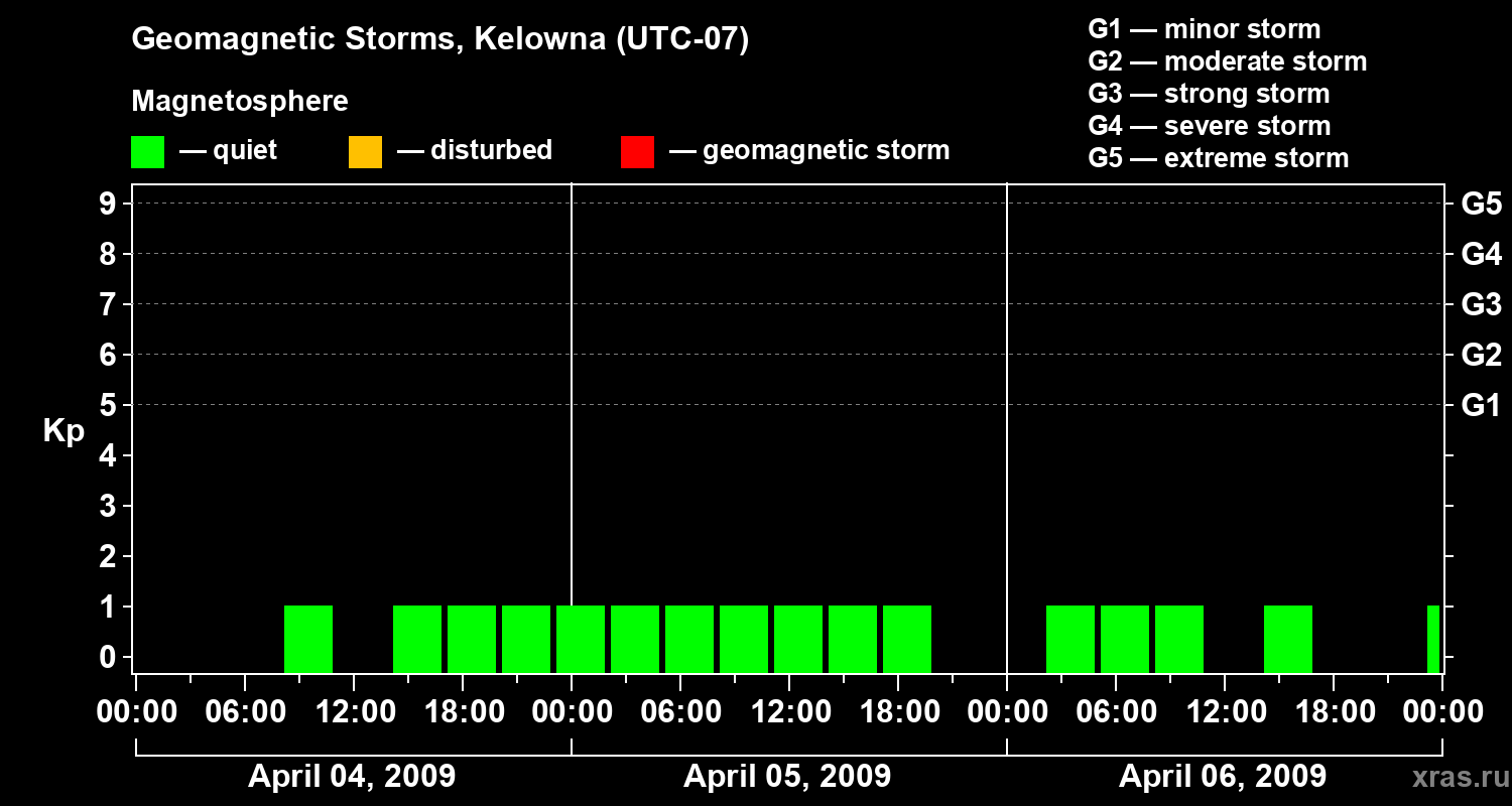 Geomagnetic storms in Kelowna in April 2009