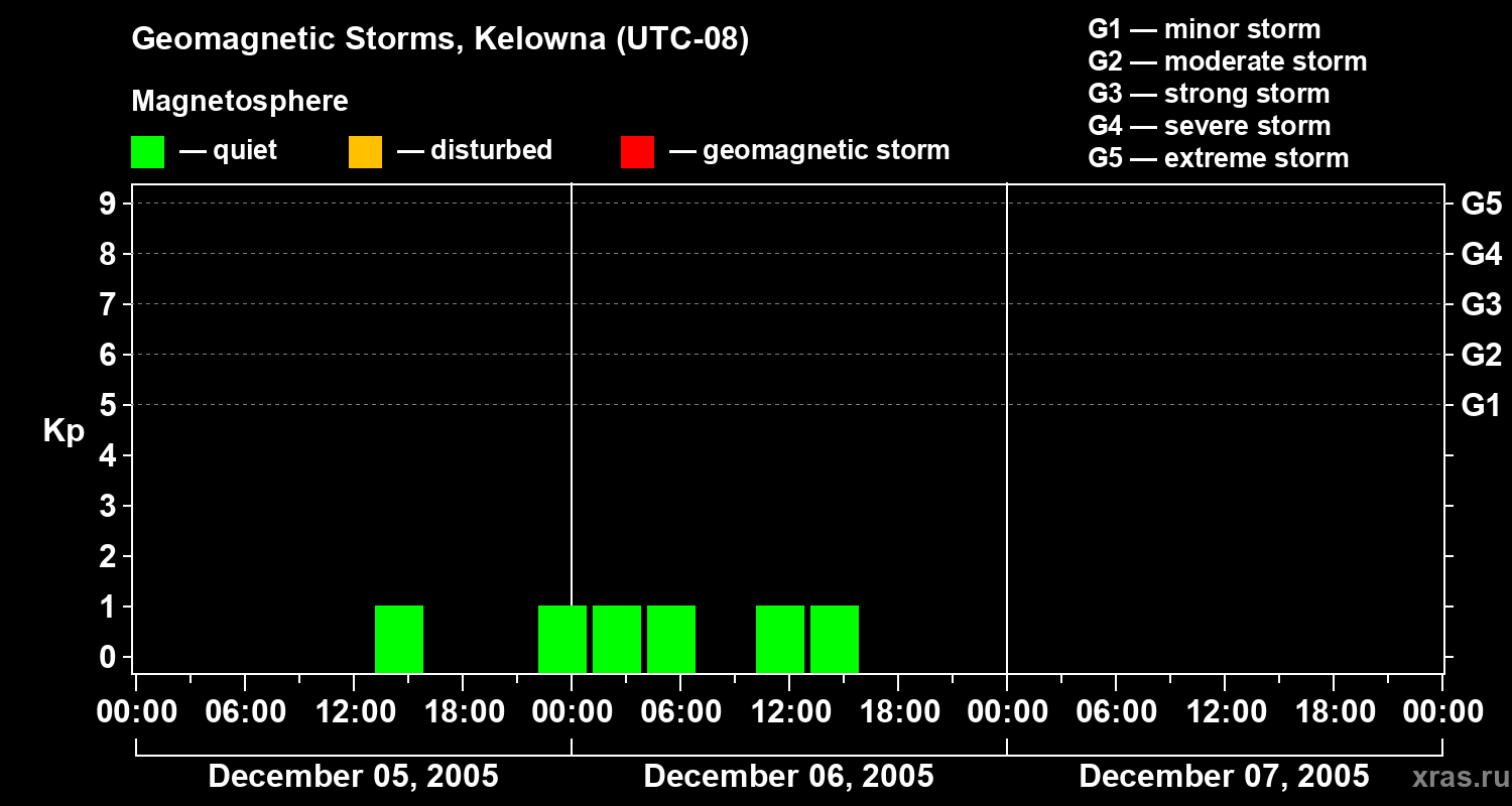 Geomagnetic storms in Kelowna on Dec 07, 2005