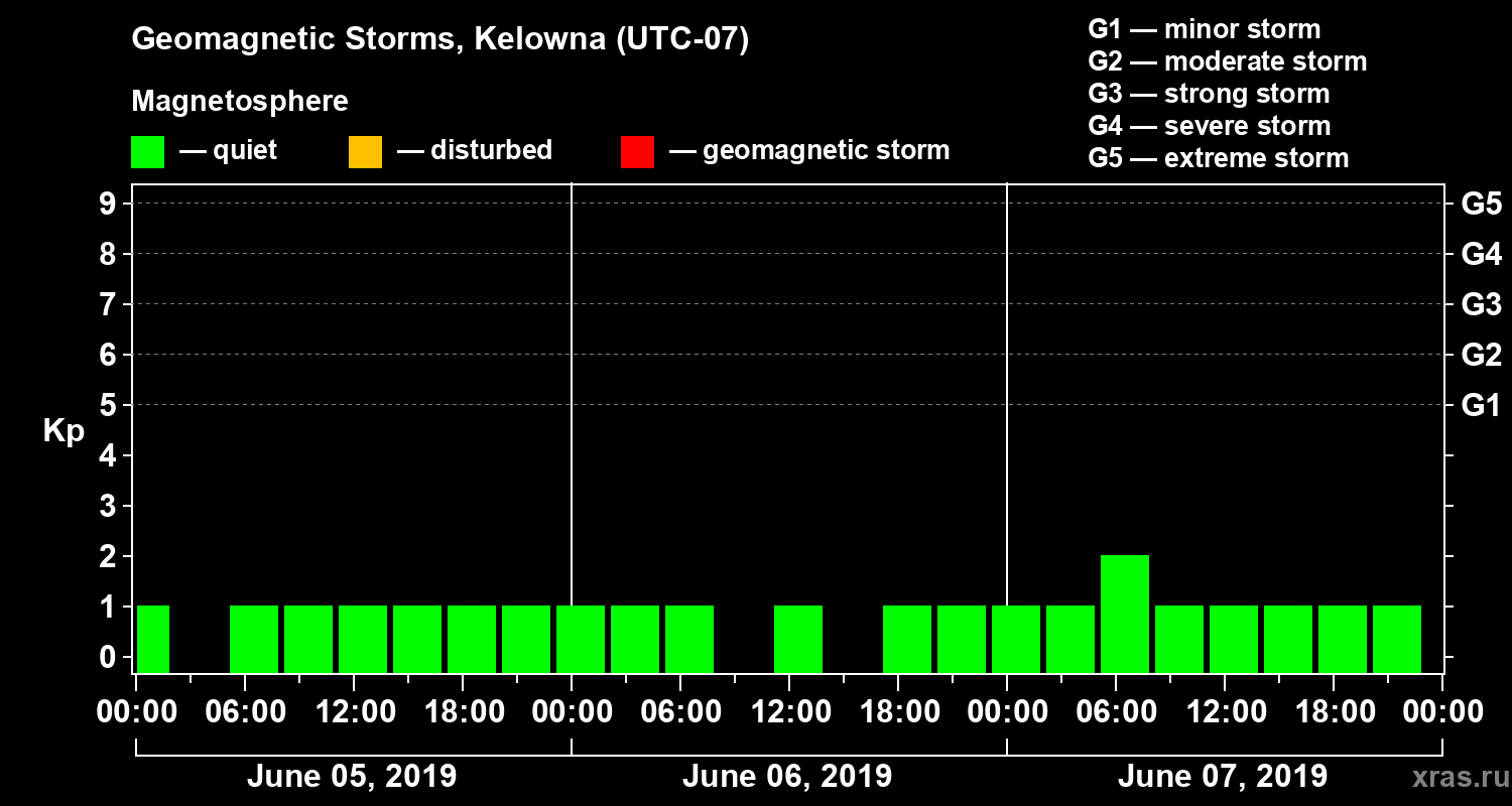 Geomagnetic storms in Kelowna on Jun 07, 2019