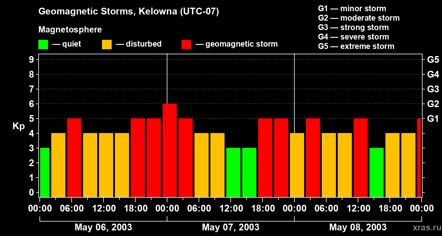 Geomagnetic storms in Kelowna on May 08, 2003