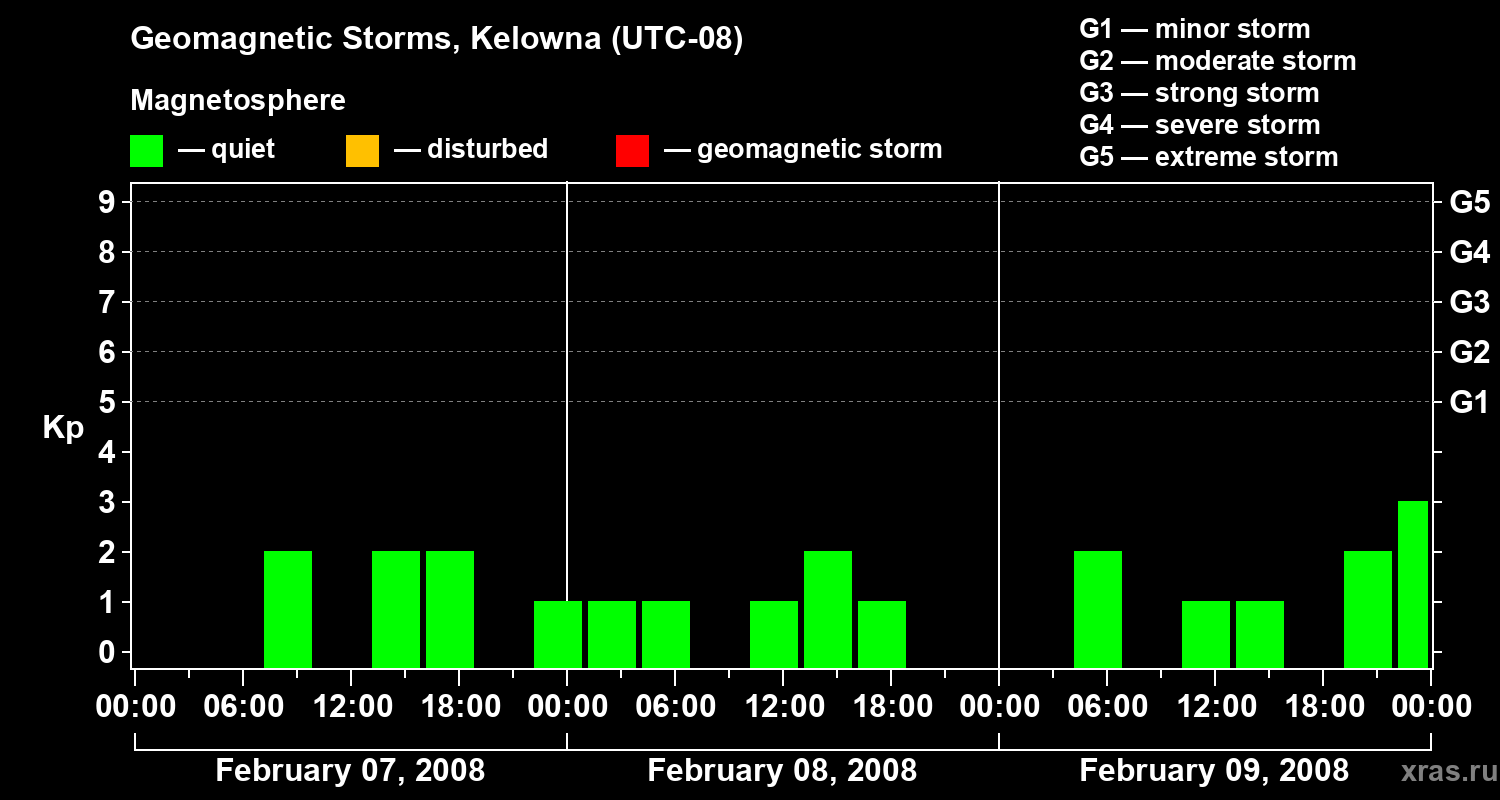 Geomagnetic storms in Kelowna — Feb 09, 2008