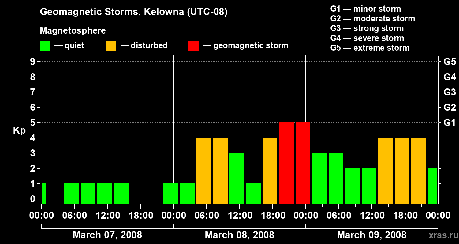 Geomagnetic storms in Kelowna — Mar 09, 2008