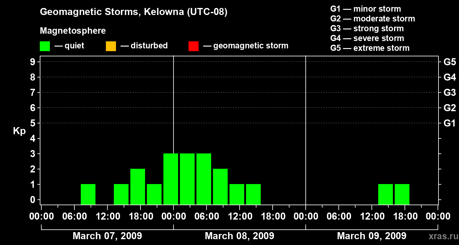 Geomagnetic storms in Kelowna — Mar 09, 2009