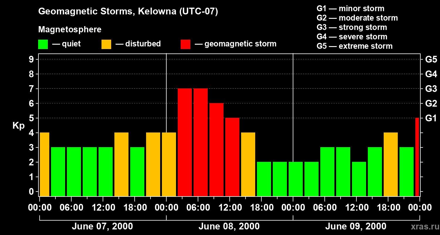 Geomagnetic storms in Kelowna on Jun 09, 2000
