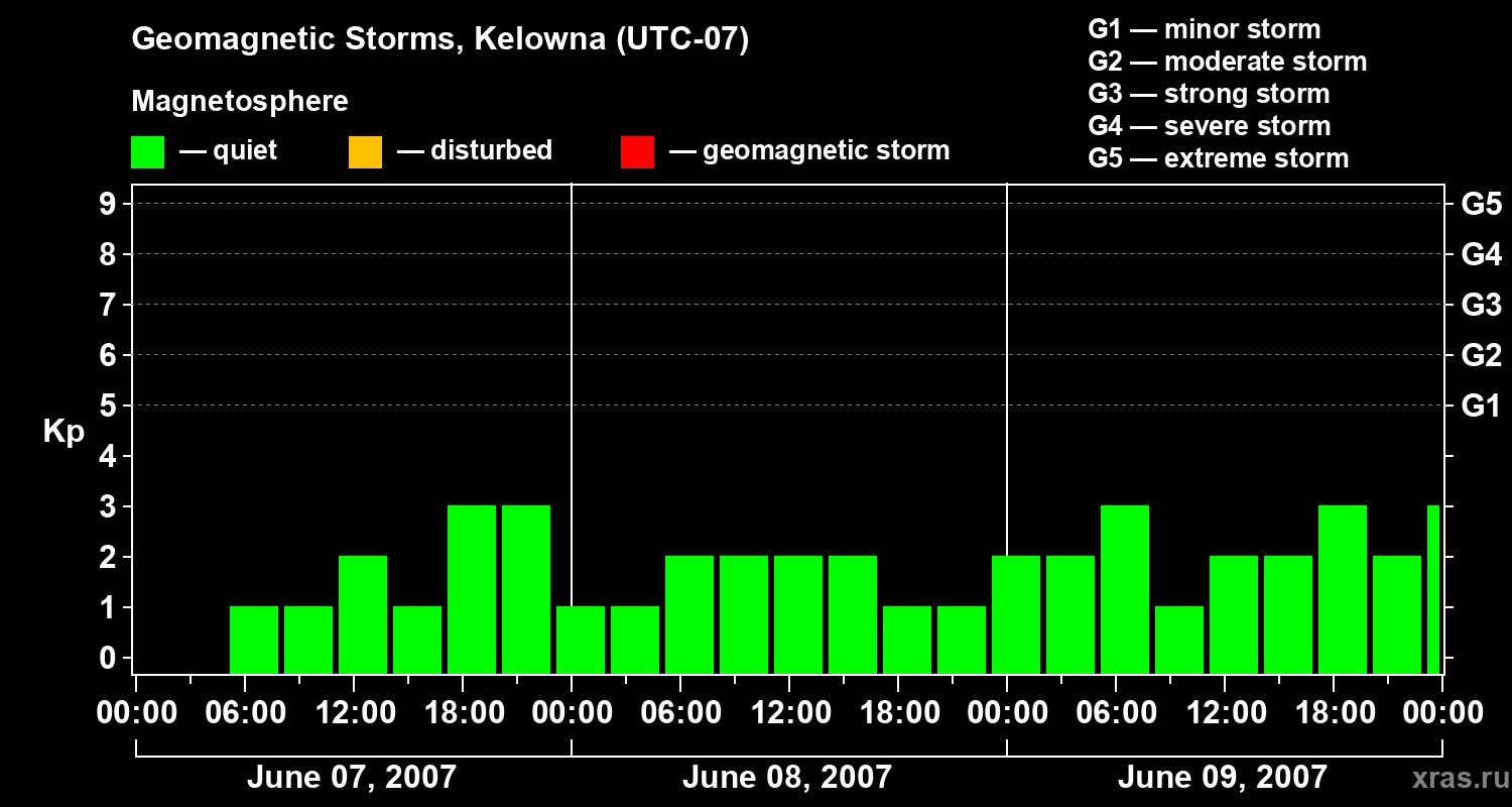Geomagnetic storms in Kelowna on Jun 09, 2007