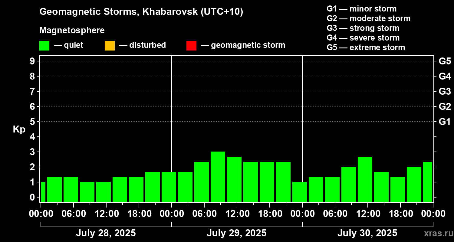 Geomagnetic storms in Khabarovsk — Jul 30, 2025