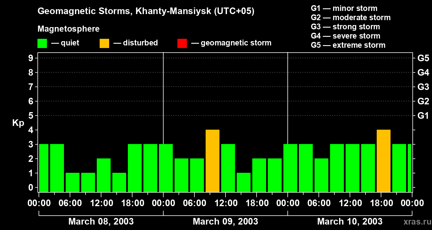 Geomagnetic storms in Khanty-Mansiysk — Mar 10, 2003