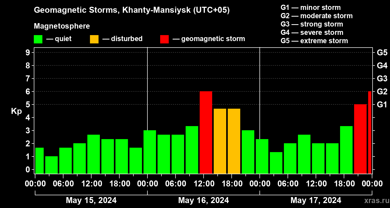 Geomagnetic storms in Khanty-Mansiysk on May 17, 2024
