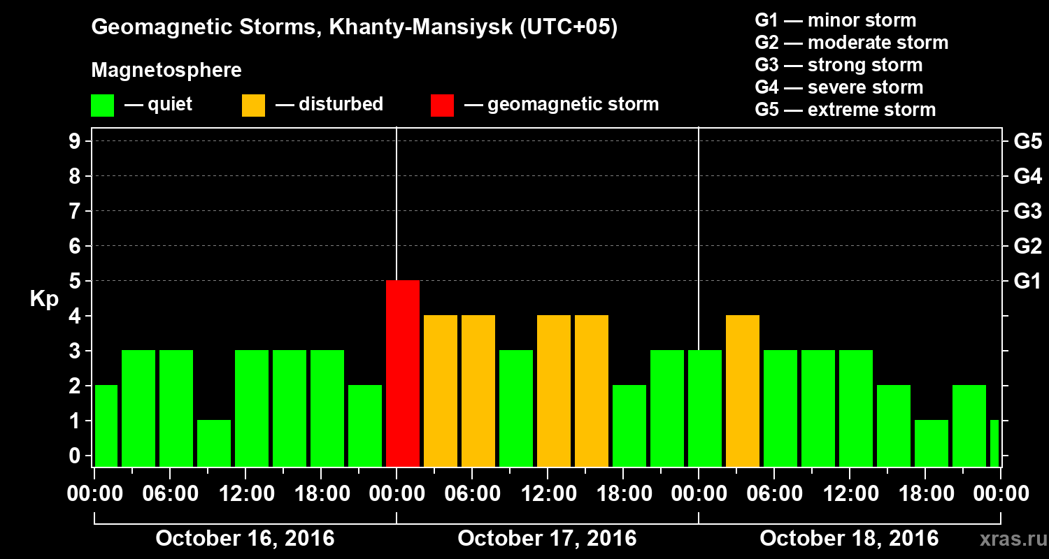 Geomagnetic storms in Khanty-Mansiysk in October 2016