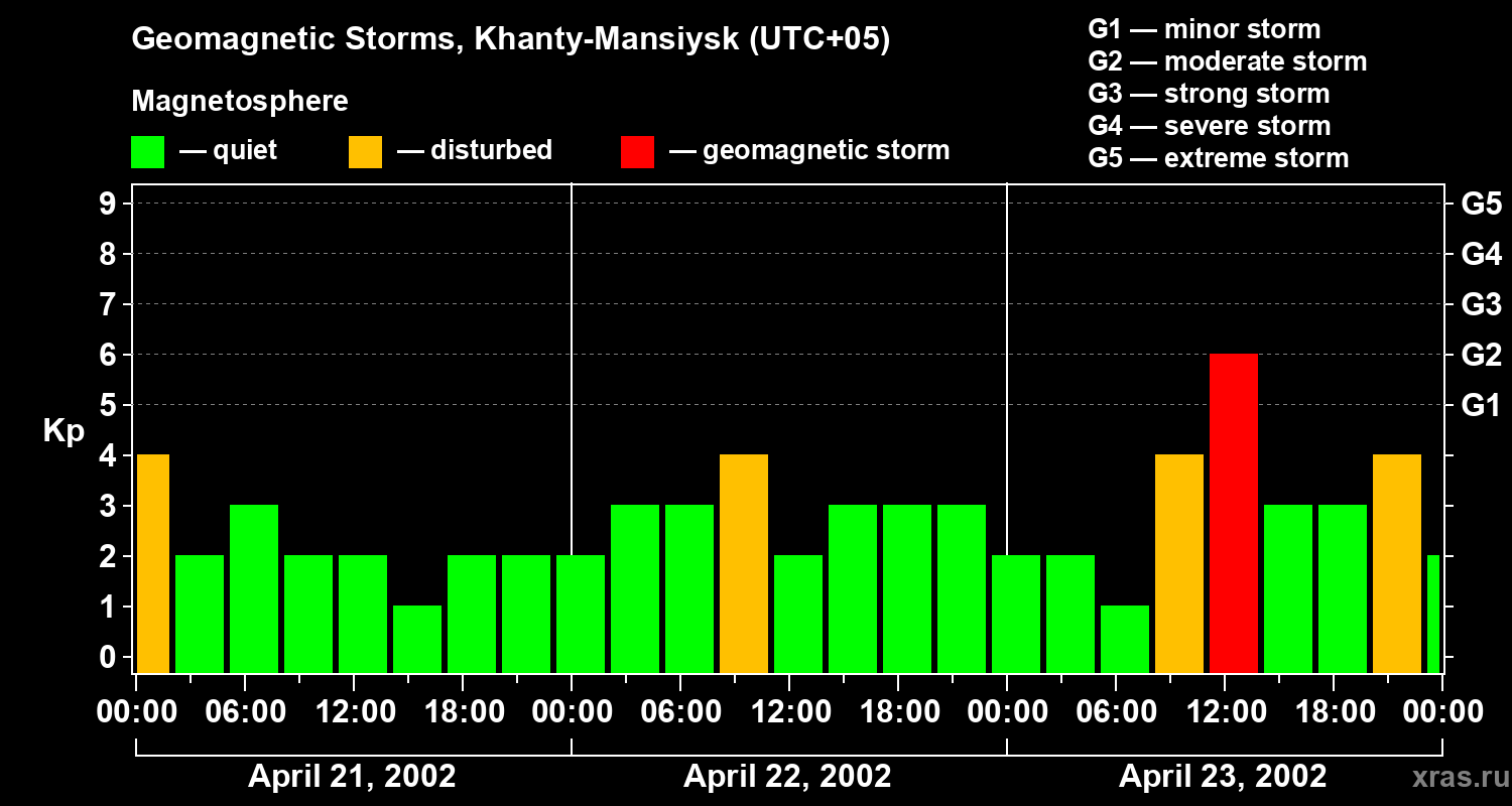 Geomagnetic storms in Khanty-Mansiysk — Apr 23, 2002