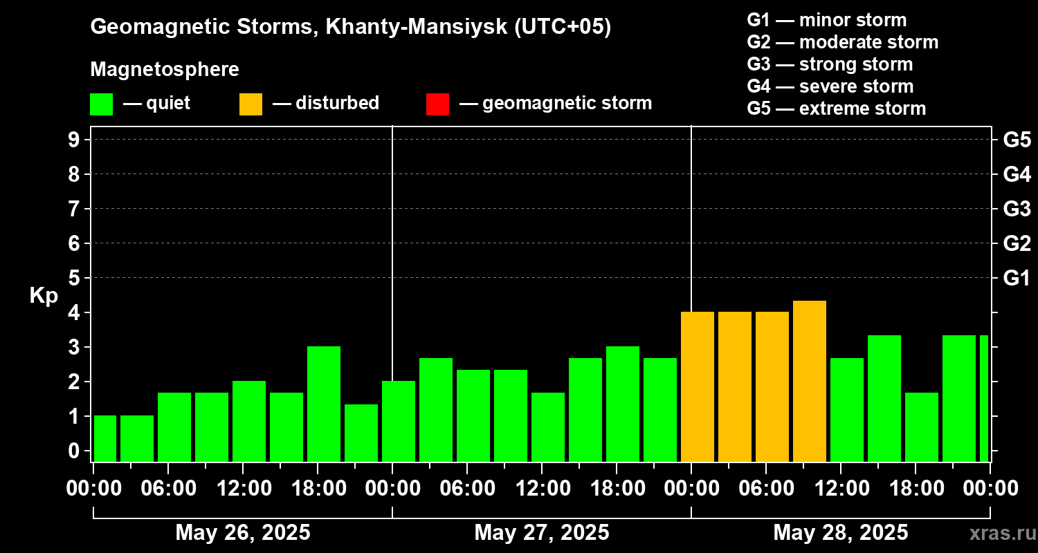 Geomagnetic storms in Khanty-Mansiysk — May 28, 2025