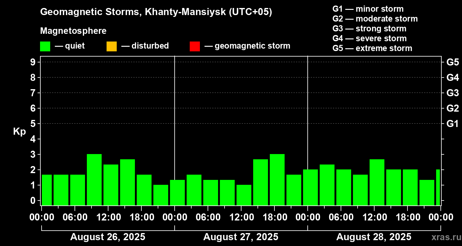 Geomagnetic storms in Khanty-Mansiysk — Aug 28, 2025