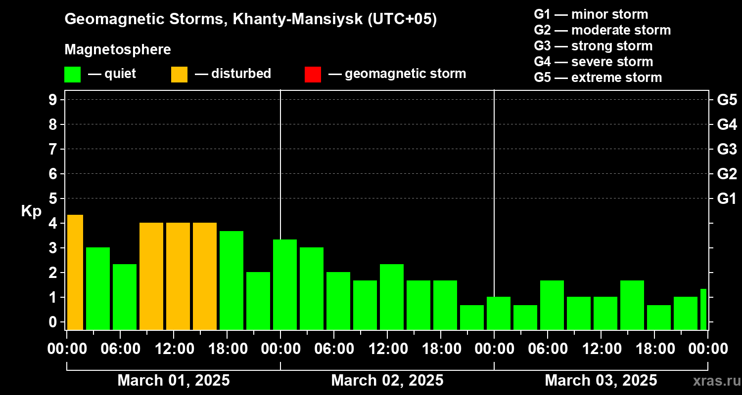 Geomagnetic storms in Khanty-Mansiysk — Mar 03, 2025