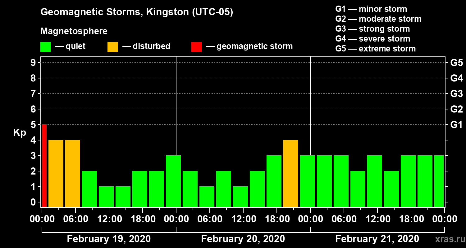 Geomagnetic storms in Kingston on Feb 21, 2020