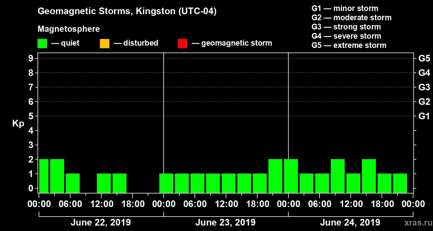 Geomagnetic storms in Kingston on Jun 24, 2019
