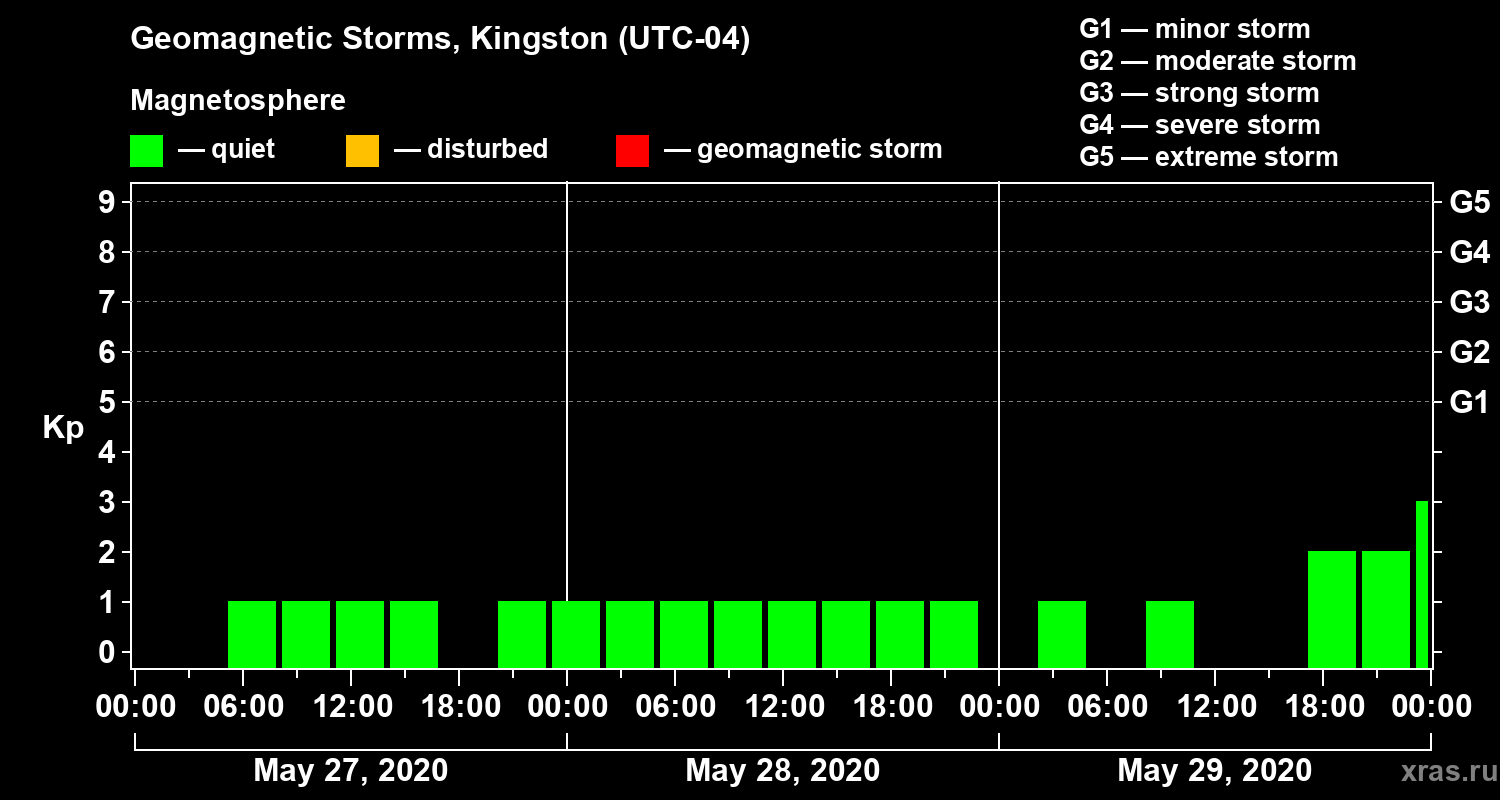 Geomagnetic storms in Kingston on May 29, 2020
