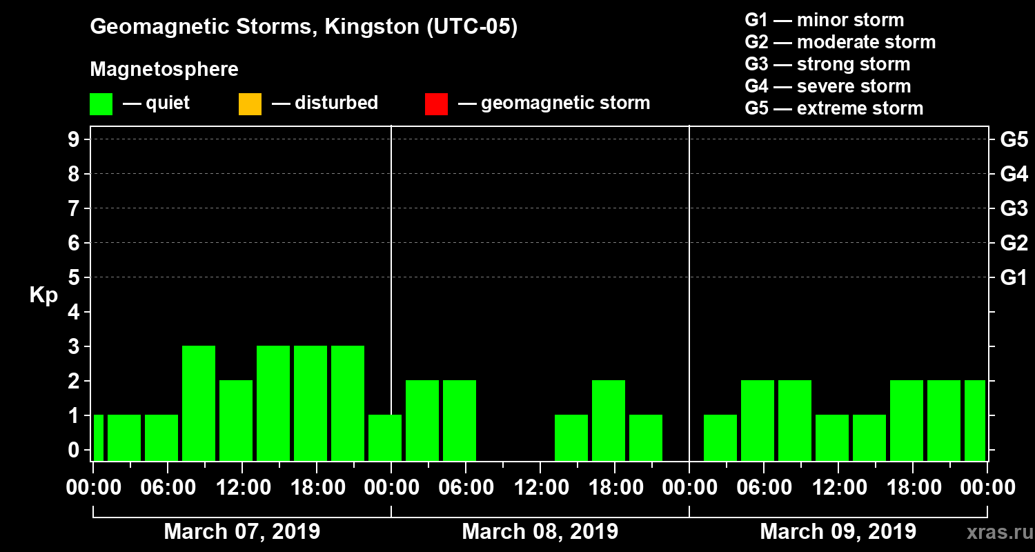 Geomagnetic storms in Kingston on Mar 09, 2019