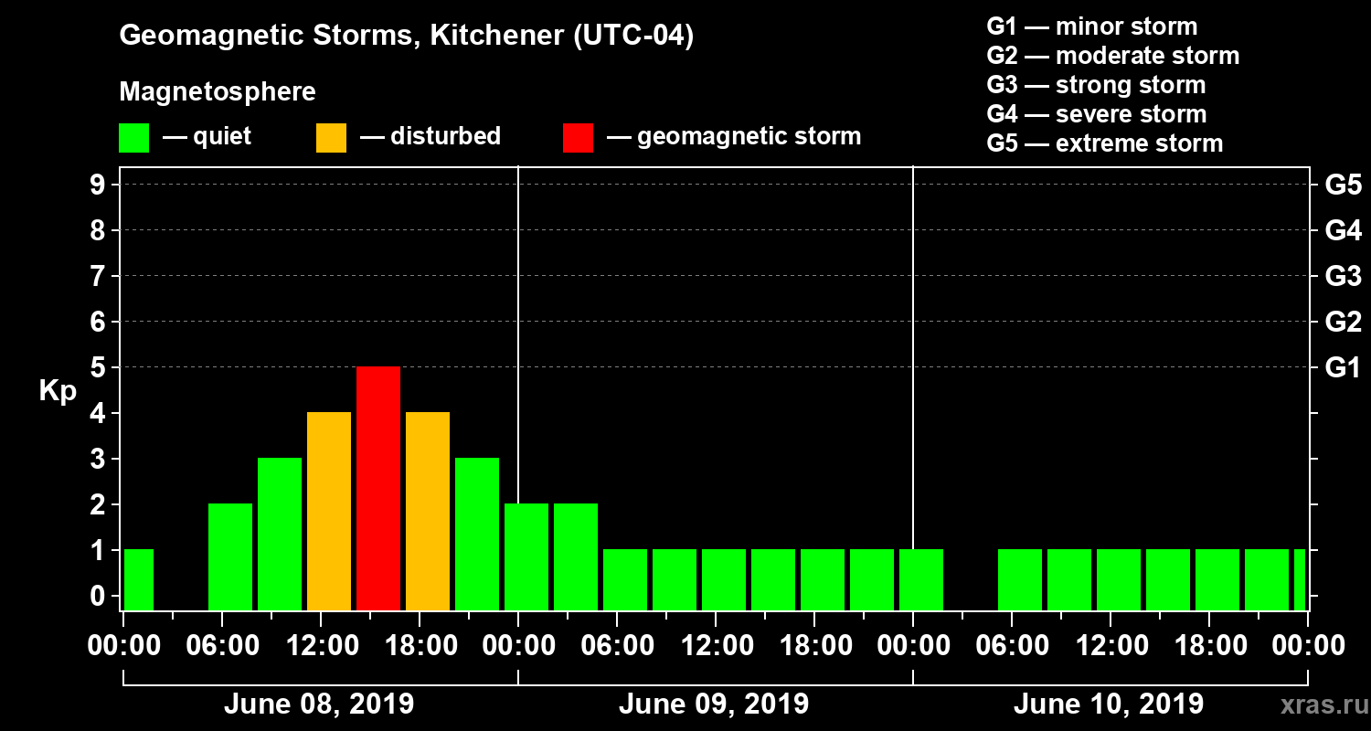 Geomagnetic storms in Kitchener — Jun 10, 2019