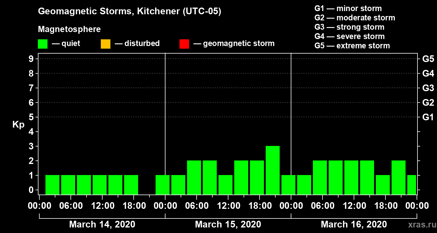 Geomagnetic storms in Kitchener in March 2020