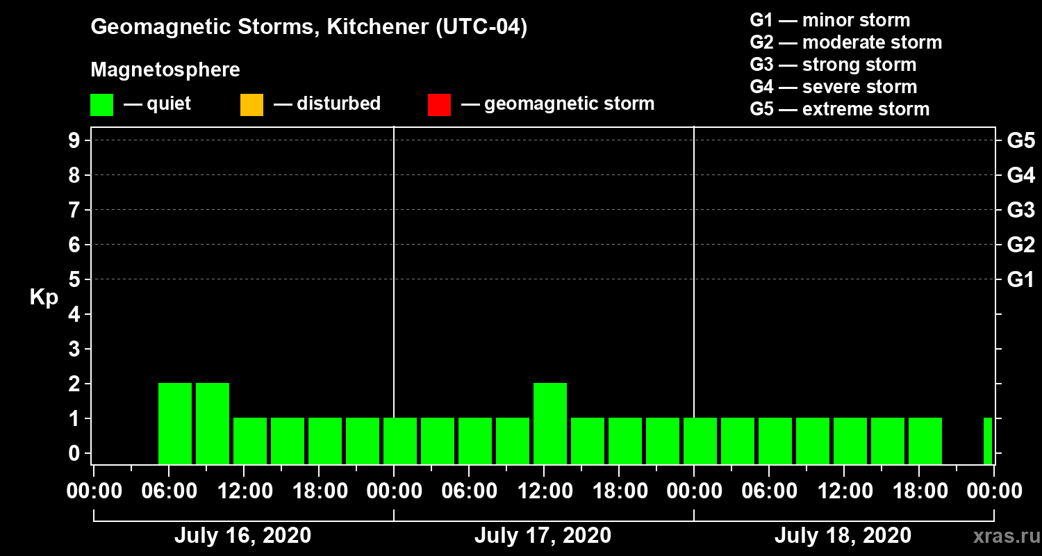 Geomagnetic storms in Kitchener in July 2020
