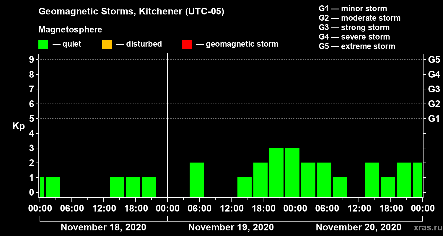 Geomagnetic storms in Kitchener on Nov 20, 2020