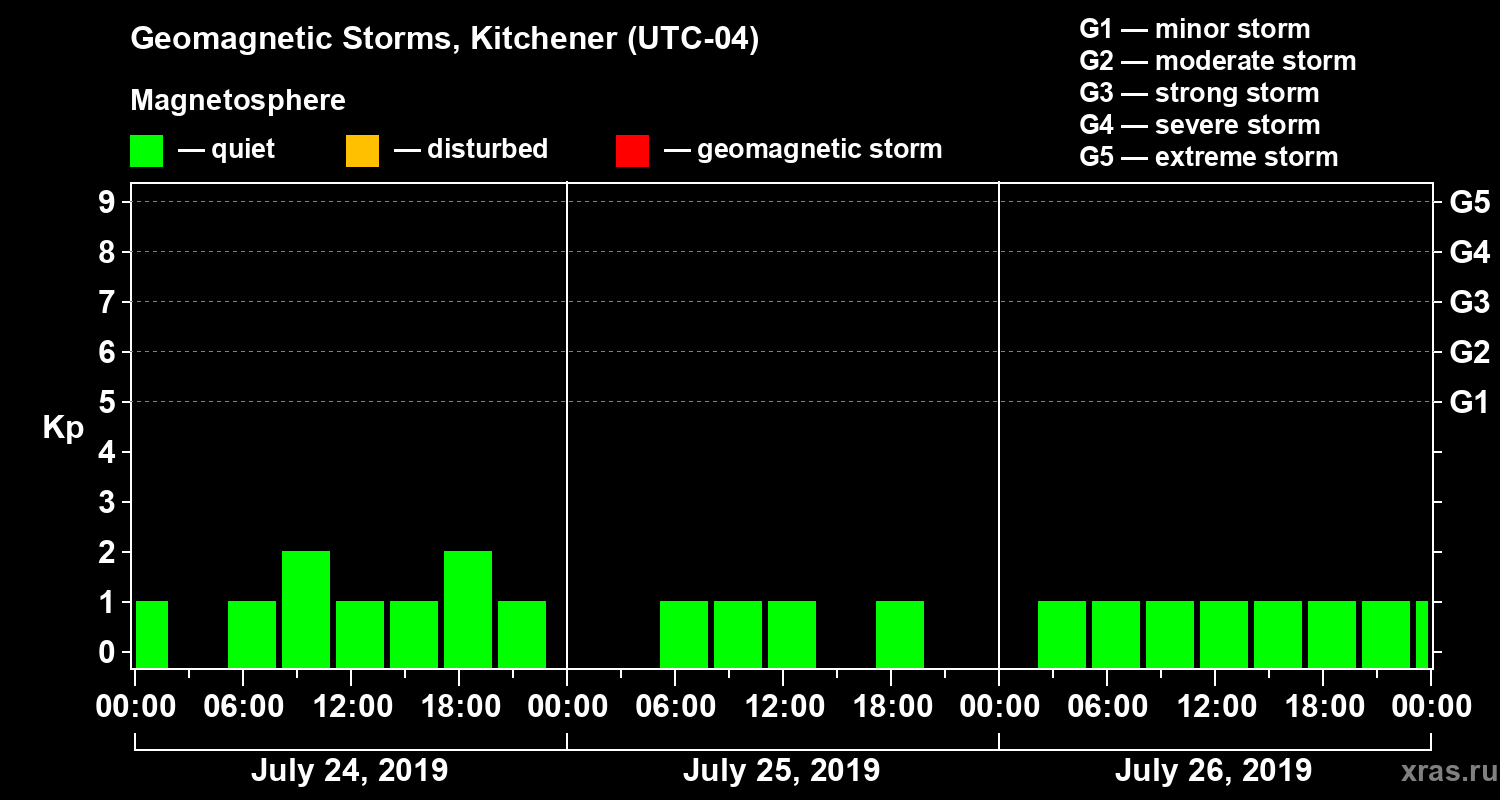 Geomagnetic storms in Kitchener on Jul 26, 2019