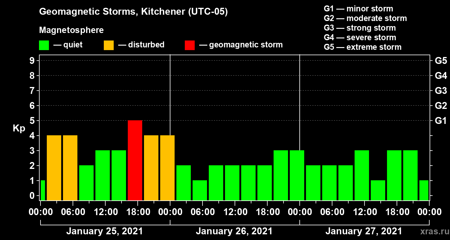 Geomagnetic storms in Kitchener — Jan 27, 2021