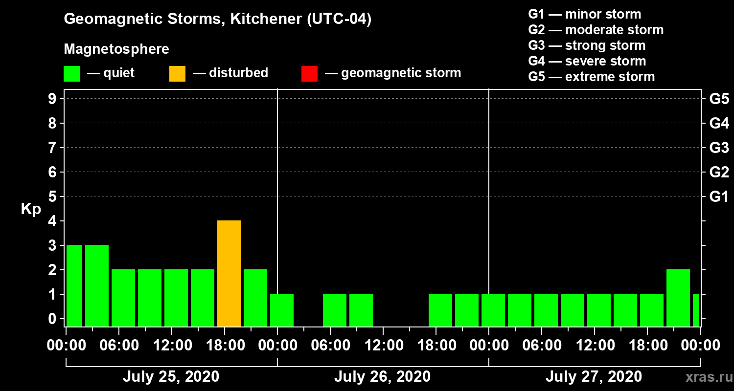 Geomagnetic storms in Kitchener — Jul 27, 2020