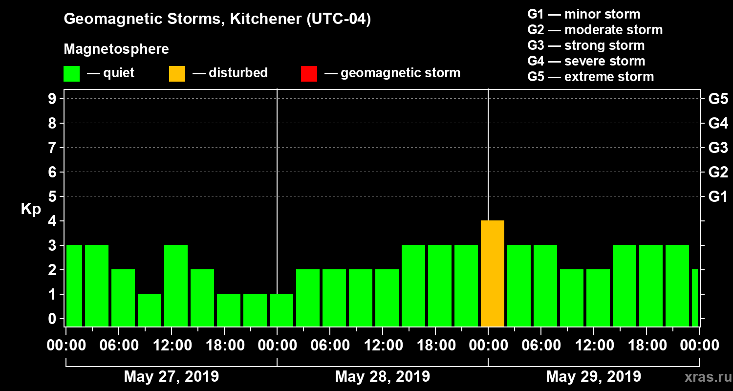 Geomagnetic storms in Kitchener in May 2019