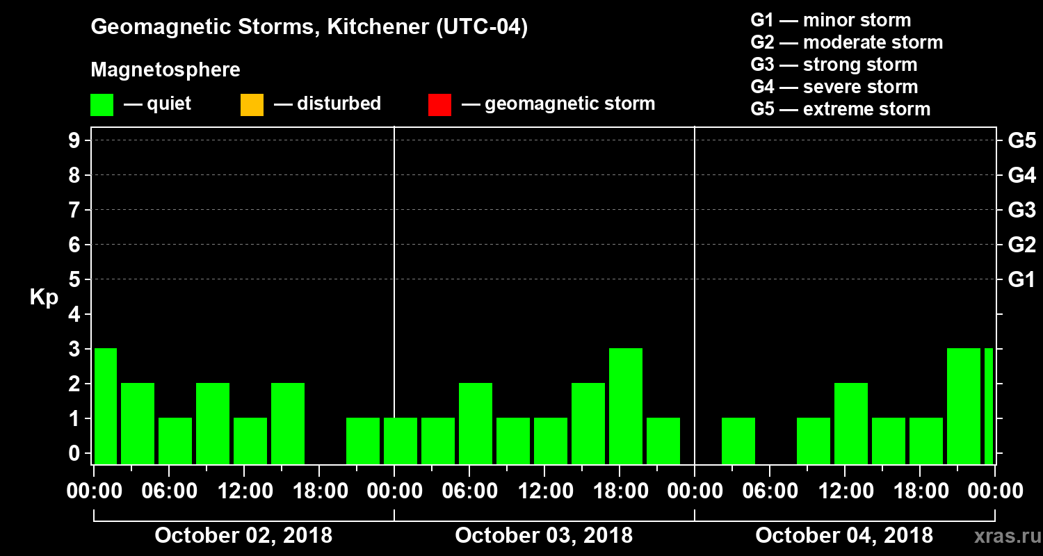 Geomagnetic storms in Kitchener on Oct 04, 2018