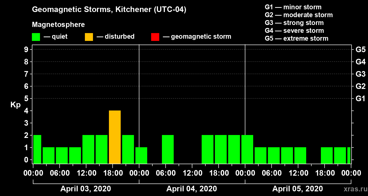 Geomagnetic storms in Kitchener on Apr 05, 2020