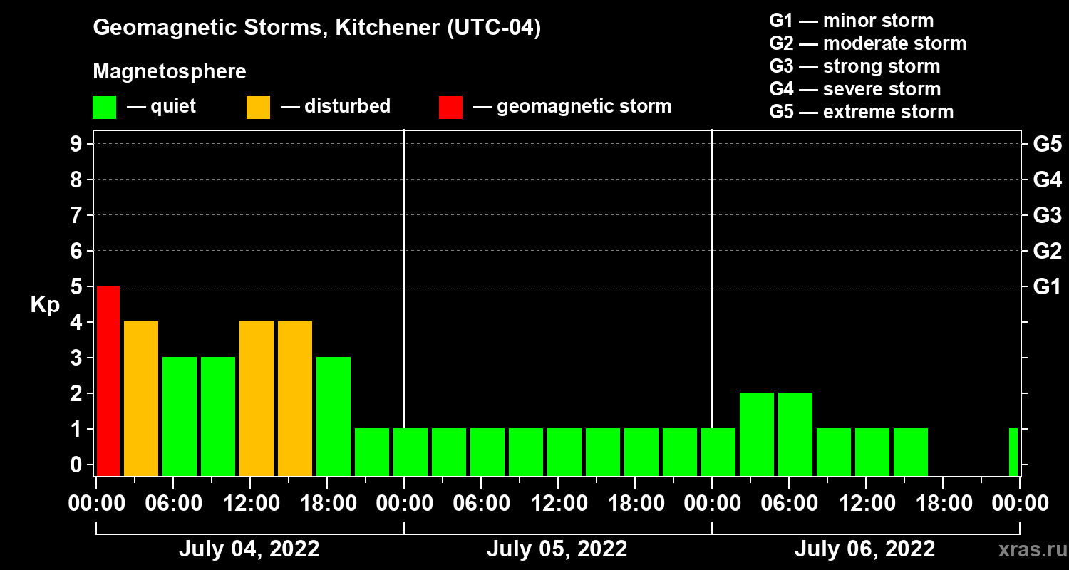 Geomagnetic storms in Kitchener — Jul 06, 2022