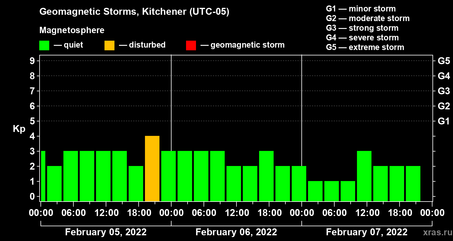 Geomagnetic storms in Kitchener on Feb 07, 2022