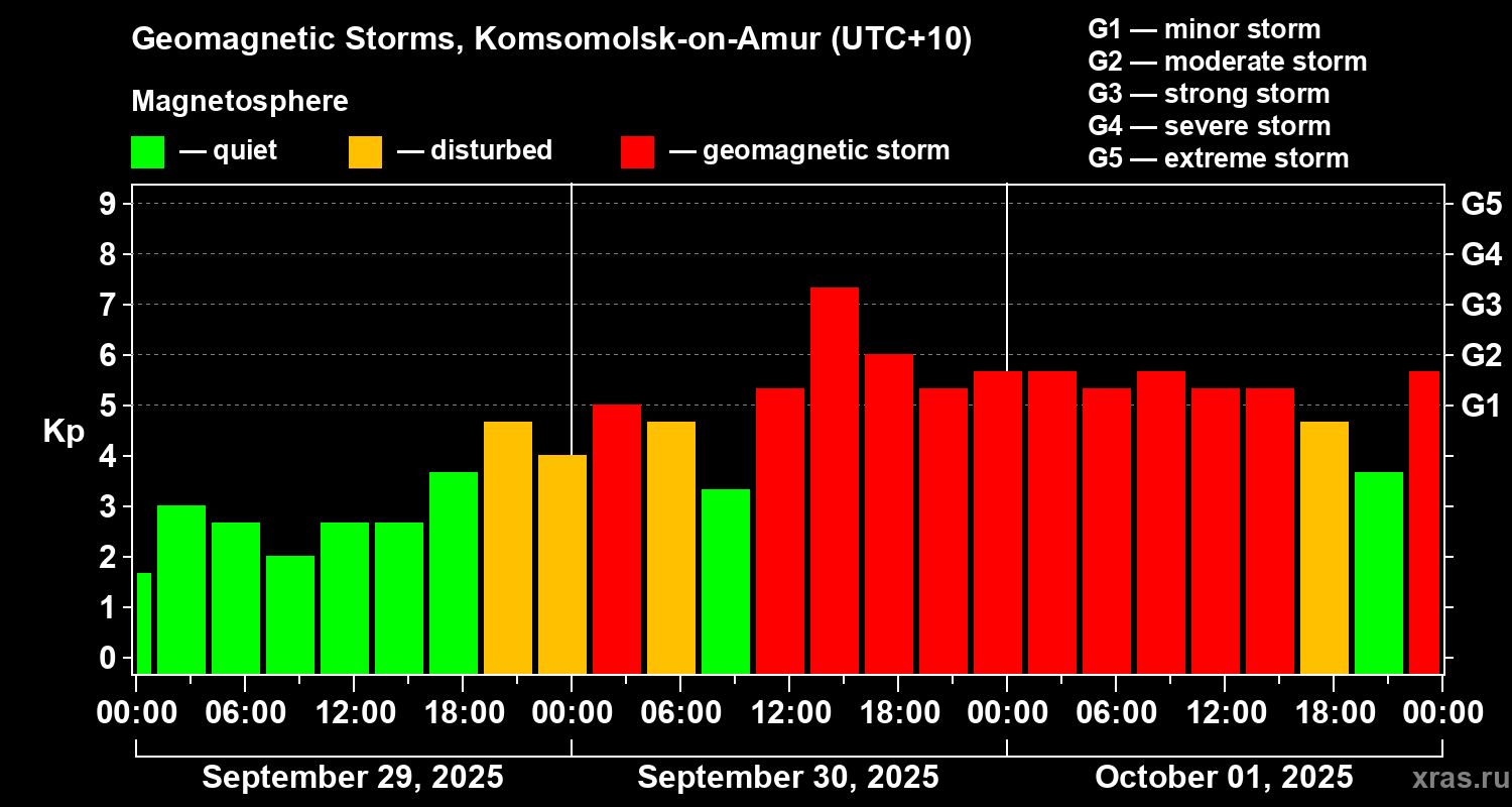Geomagnetic storms in Komsomolsk-on-Amur — Oct 01, 2025