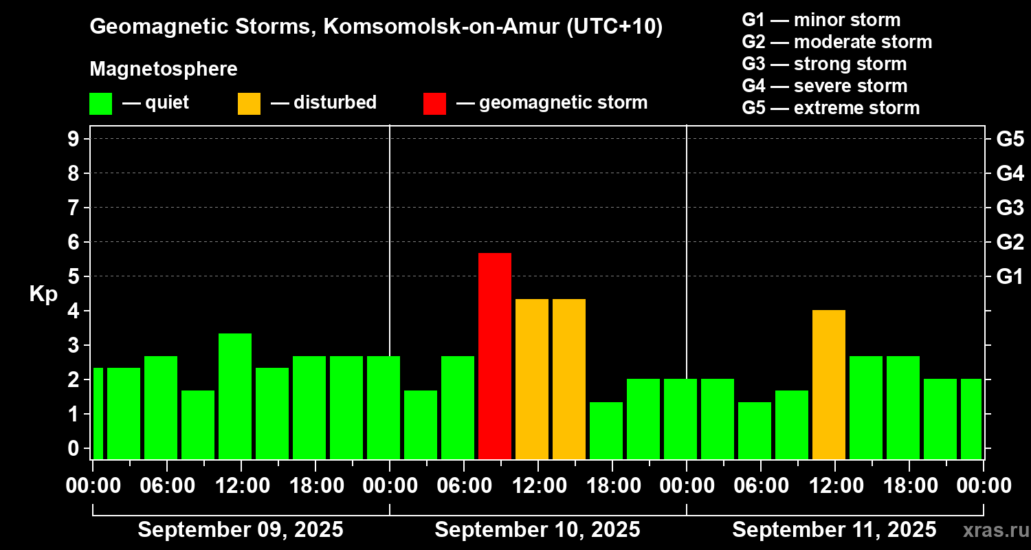 Geomagnetic storms in Komsomolsk-on-Amur — Sep 11, 2025