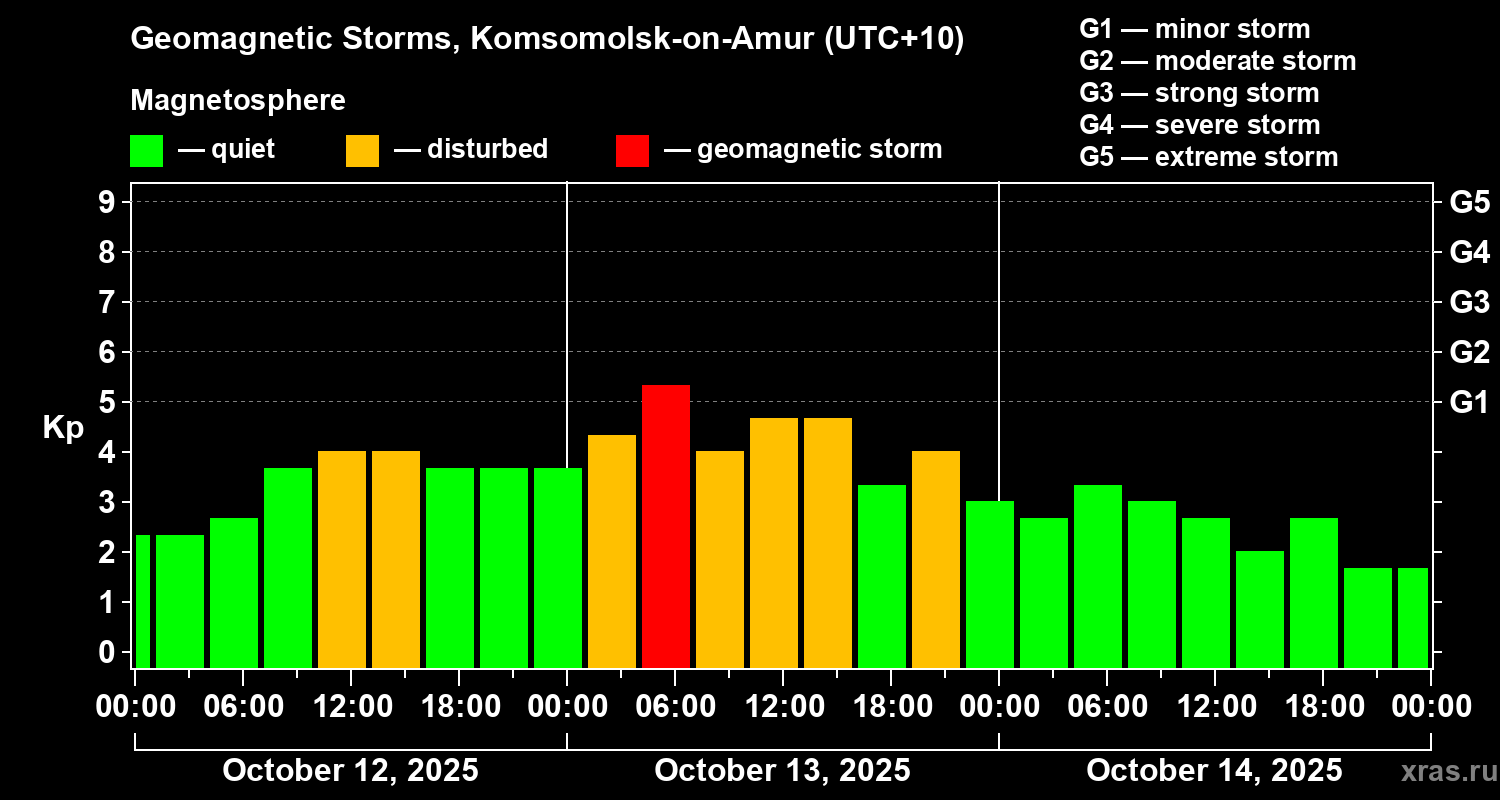Geomagnetic storms in Komsomolsk-on-Amur — Oct 14, 2025