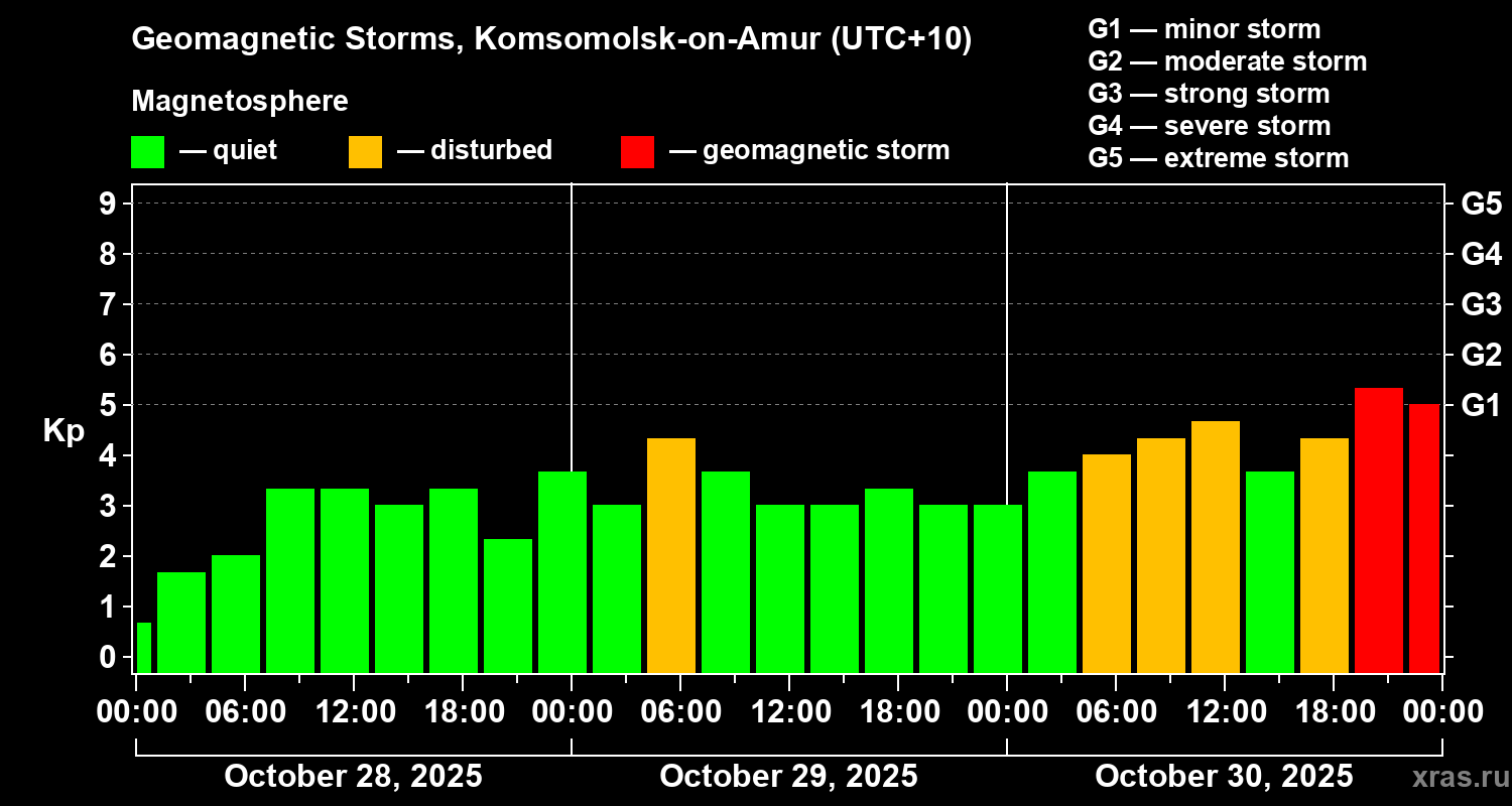 Geomagnetic storms in Komsomolsk-on-Amur — Oct 30, 2025