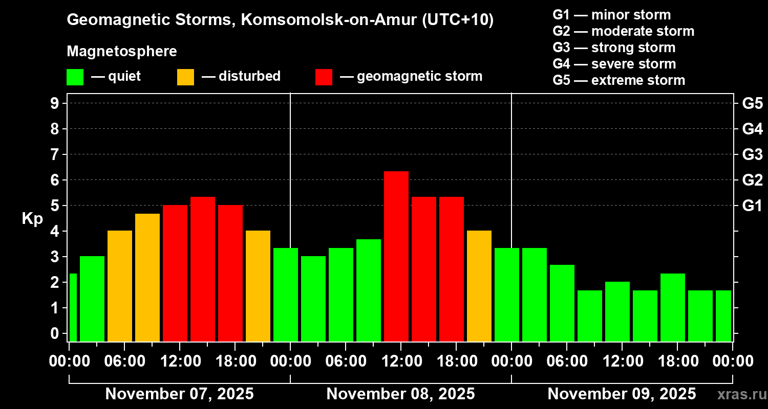 Geomagnetic storms in Komsomolsk-on-Amur — Nov 09, 2025