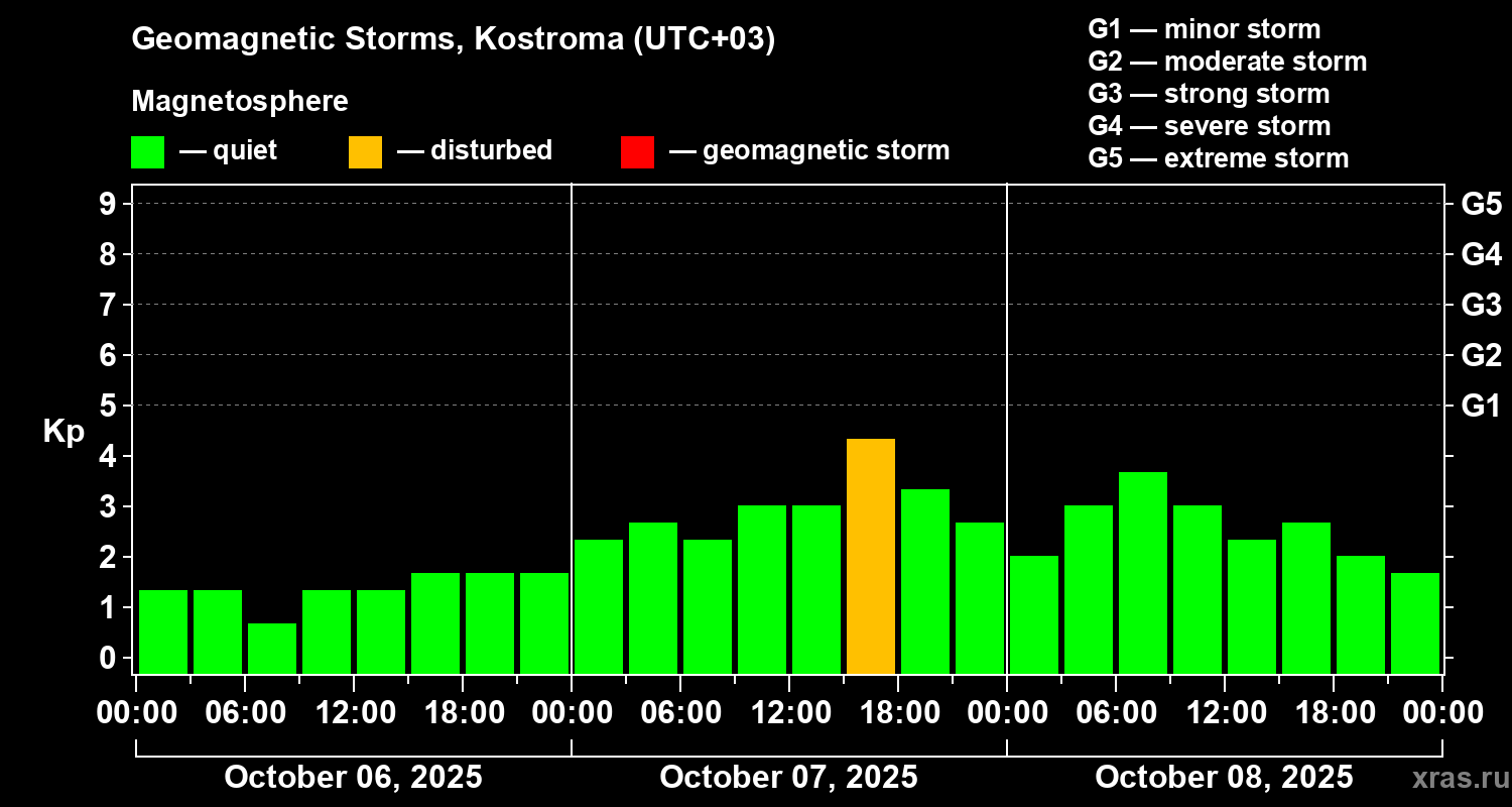 Geomagnetic storms in Kostroma — Oct 08, 2025