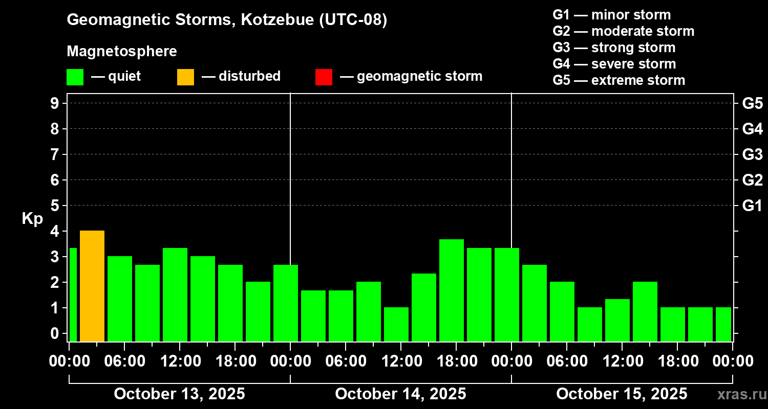 Geomagnetic storms in Kotzebue — Oct 15, 2025