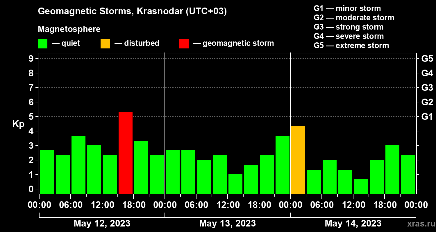Geomagnetic storms in Krasnodar on May 14, 2023